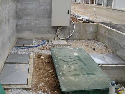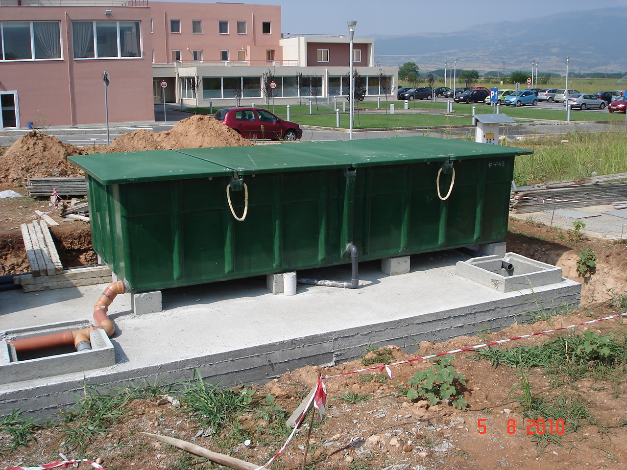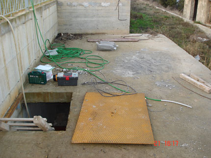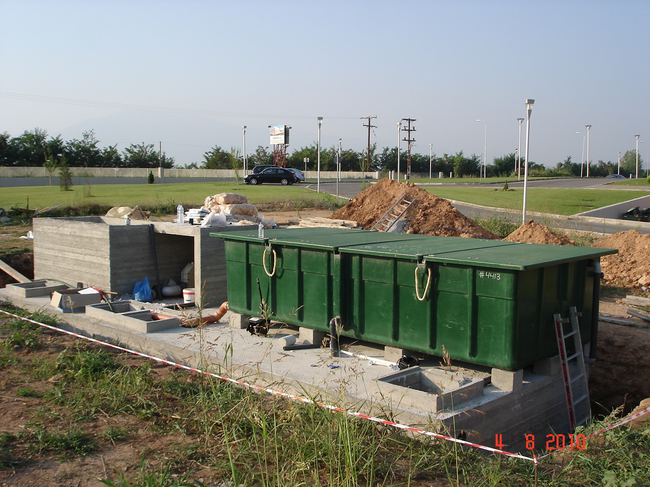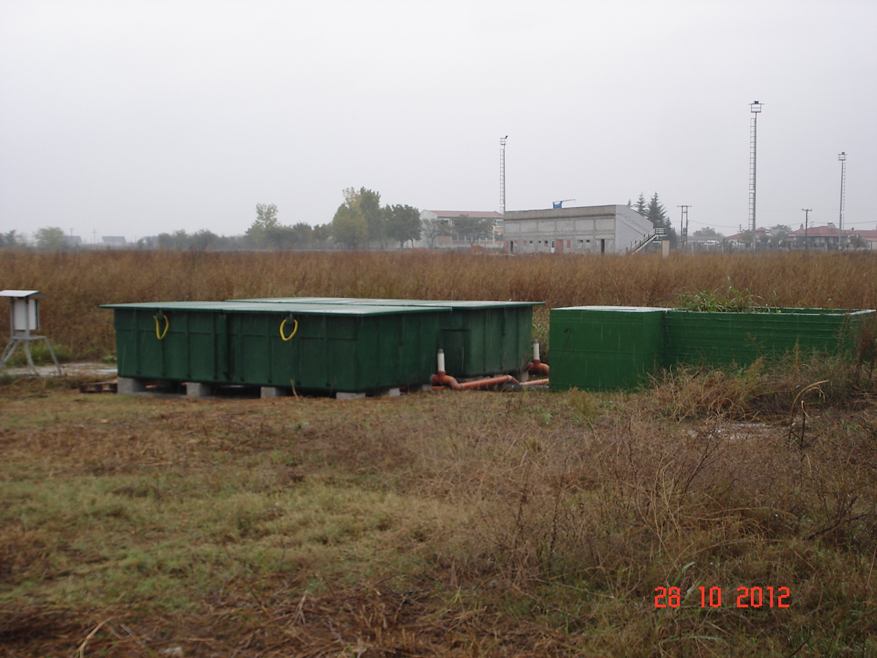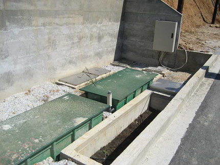Άποψη του συστήματος. Διακρίνεται το κουτί AdvanTex, τα φρεάτια των δεξαμενών και ο ηλεκτρικός πίνακας (στο βάθος).