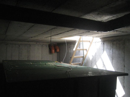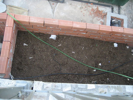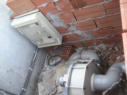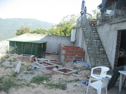 Εγκατάσταση του συστήματος: Δεξιά διακρίνεται το φίλτρο απόσμησης και ο οικίσκος εγκατάστασης του ηλεκτρικού πίνακα και του εξαεριστήρα. Σε πρώτο πλάνο τα φρεάτια των δεξαμενών. Οι σκάλες οδηγούν στο μπαλκόνι της ταβέρνας.